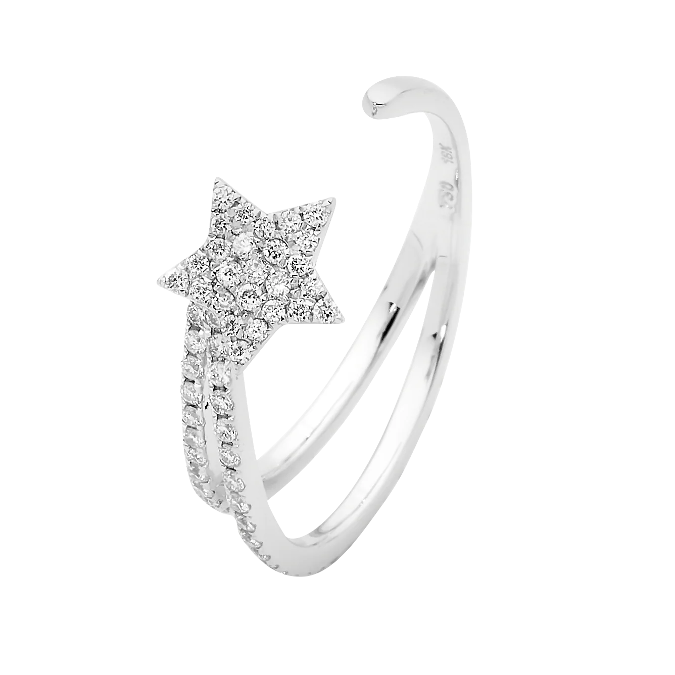 Meticulously handcrafted 18k gold and diamond open comet ring, showcasing 0.51 carats of F/VS diamonds in the stars and tails that curve elegantly around the finger. Refined and delicate as an everyday piece or perfect for layering with other House of K'dor Cosmos collection jewellery.
